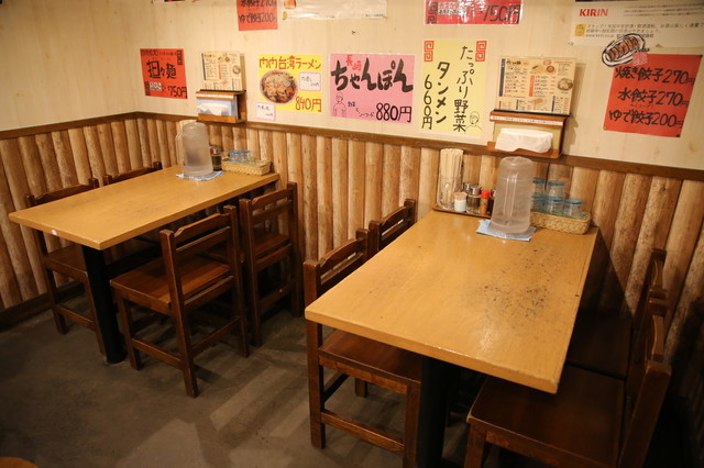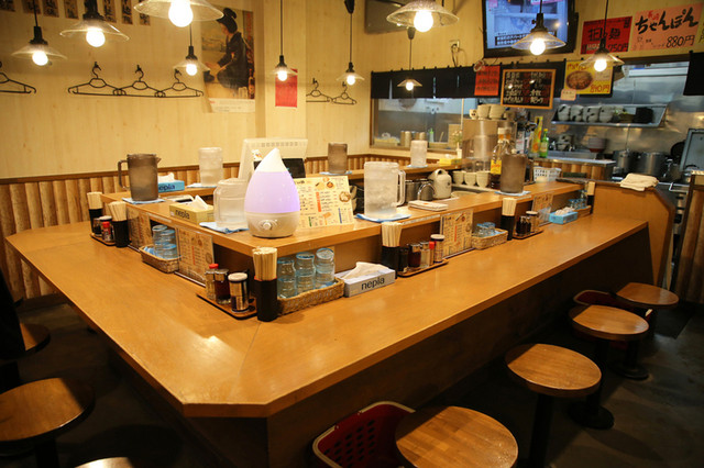 店内はカウンターがずらりと並び、テーブル席も完備。