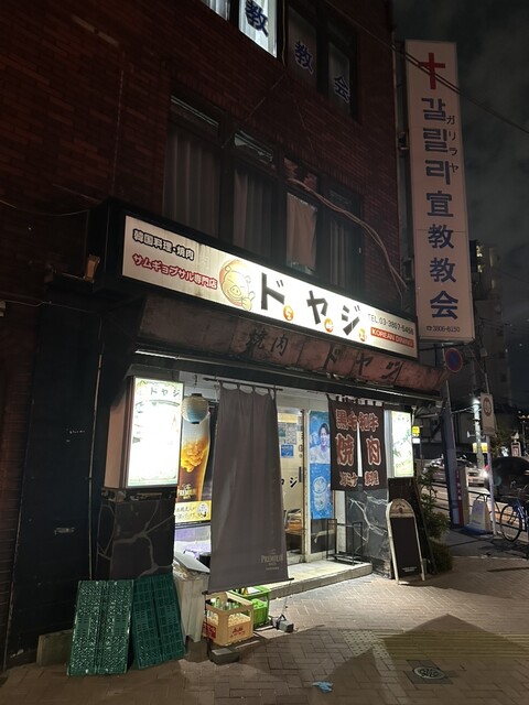「炭火焼肉 ドヤジ」は、昔ながらの焼肉店が軒を連ねる三河島エリアで、地元の人々に長年親しまれている町焼肉の名店です。場所は新三河島駅から徒歩3〜4分、交差点のすぐそばという好立地にあります。