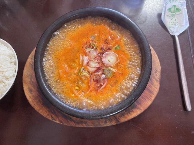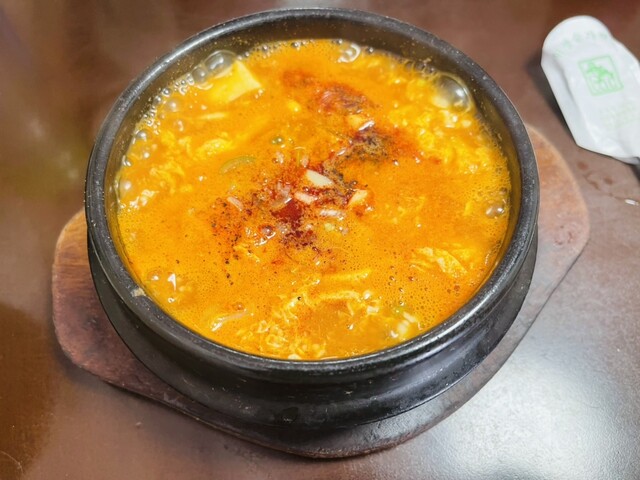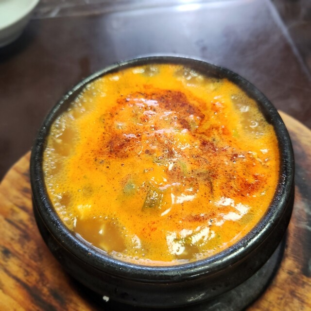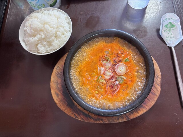 そんな中、ランチメニューを見て12時で混んでいなくて入りやすい店がここだった。ランチコストの相場は1200-1300円税込、ユッケジャン定食を選定し入店した。