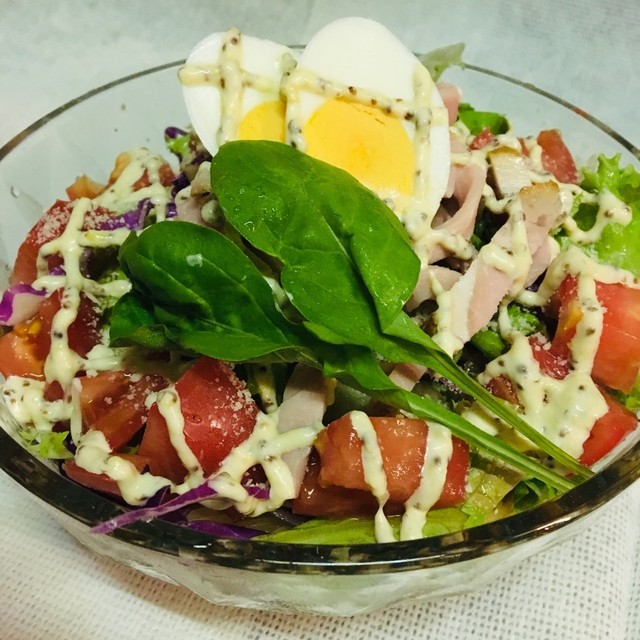 しっとり低温調理した若鶏胸肉とトリュフ香るナッツを砕いたものを乗せました!