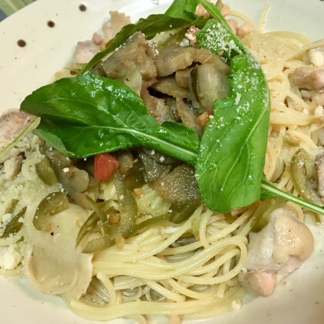 六月は「MIXナッツと若鶏のペッパークリームパスタ」