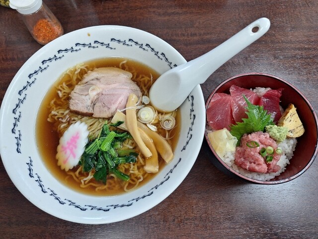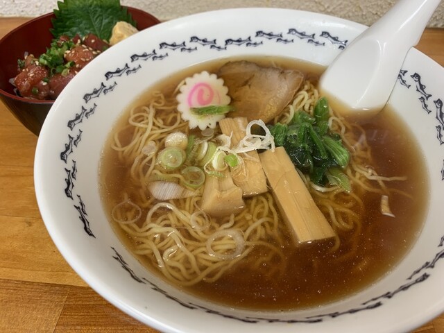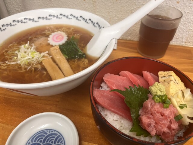 今回は月に一回ある市場一般開放デーであったため、市場で買い物を楽しみつつ、締めでまたお邪魔しました。 チャーシューエッグ定食と悩みましたが、土曜日限定の八戸ラーメンとミニ天丼セットにしました。 多少並びはしましたが、満足度が高すぎます。 ミニ天丼ですが、天ぷらが通常のものとは小ぶり... 詳細を見る