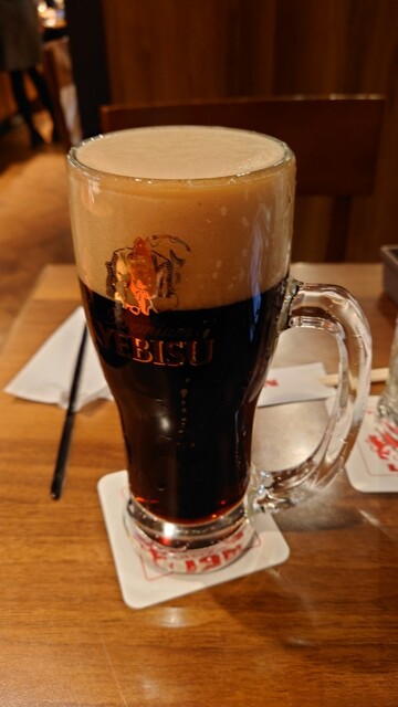 1軒目の平日夕刻サクッと利用(平日乾杯グラスビール半額クーポンあり)に、そんなに混んでないテーブル席へゆったりと、タブレットから大人の★生[サッポロ生ビール黒ラベル大ジョッキ930円全て税込]と[パーフェクト黒ラベル中ジョッキ720円]、鹿児島フェアから[かごしま黒豚のニラ生姜蒸しMサイズ1480円]をポチします。