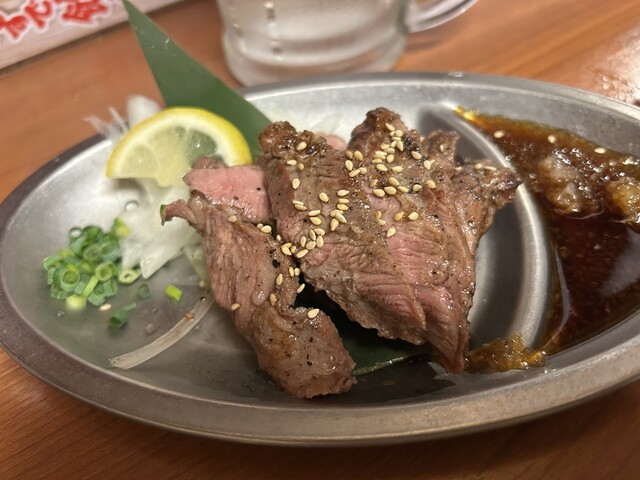 土曜日17時半に予約してから訪問 1階と2階とあって2階のテーブル席に案内されました。 メニューの最初のページをみてびっくり。 名物料理 はらみ一本焼き 300円 ればてき 300円 「安っ!!!」 とりあえず両方頼んでみる。 はらみはガッツリ食べごたえあるけどちゃん... 詳細を見る