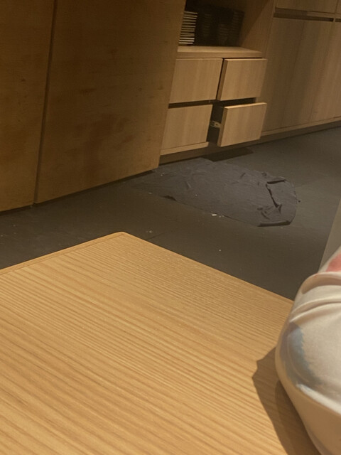 ただ通路に面した所の引き出し開けっぱなしだったり、皿の取り扱いが荒くガッチャンガッチャンいうのと、こぼした何かには布を掛けただ...