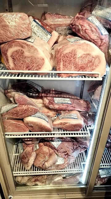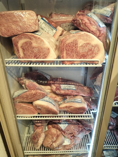 お店に入ると、お肉の中が見える冷蔵庫が飾っており、...