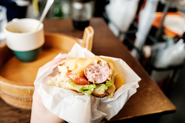 牛乳瓶に入ったカラフルなシェイクや、電球型のポットに入ったアイスコーヒー、風呂桶に入ったホットドッグなど、見た目にも楽しいメニューが豊富です。自家焙煎のこだわりのコーヒーや、特製のソーセージを使...