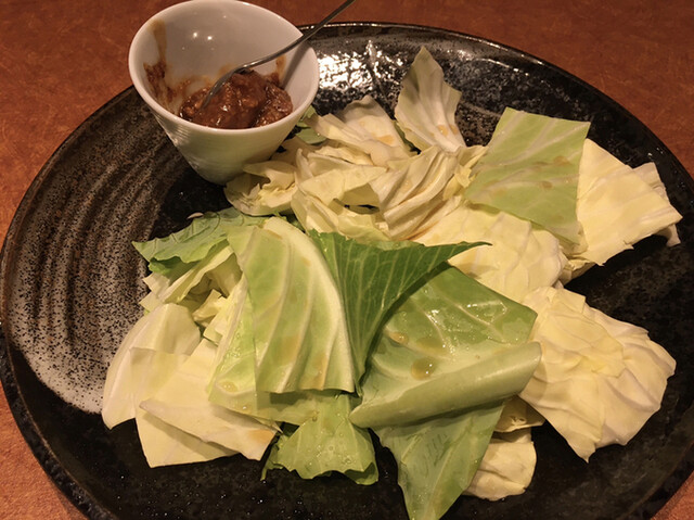 お通しは生キャベツに味噌をつけていただくの。これ、この後