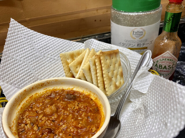 常連さん達が注文するチリビーンズが美味しくてビ...