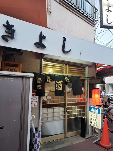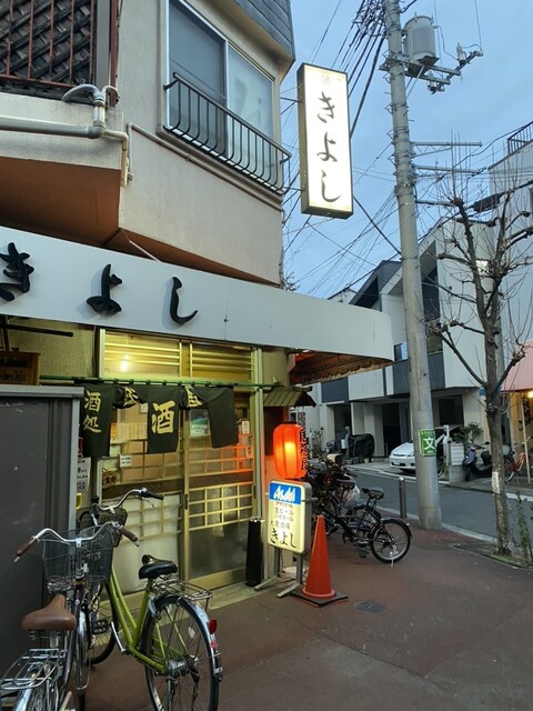 街道の交差点奥に佇む居酒屋きよしさんへ。