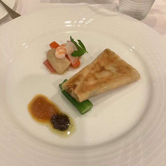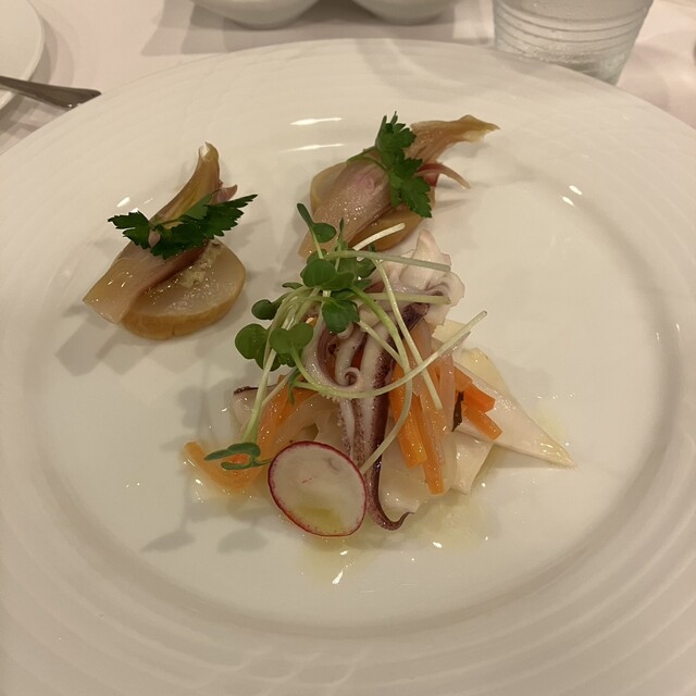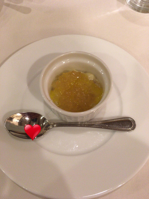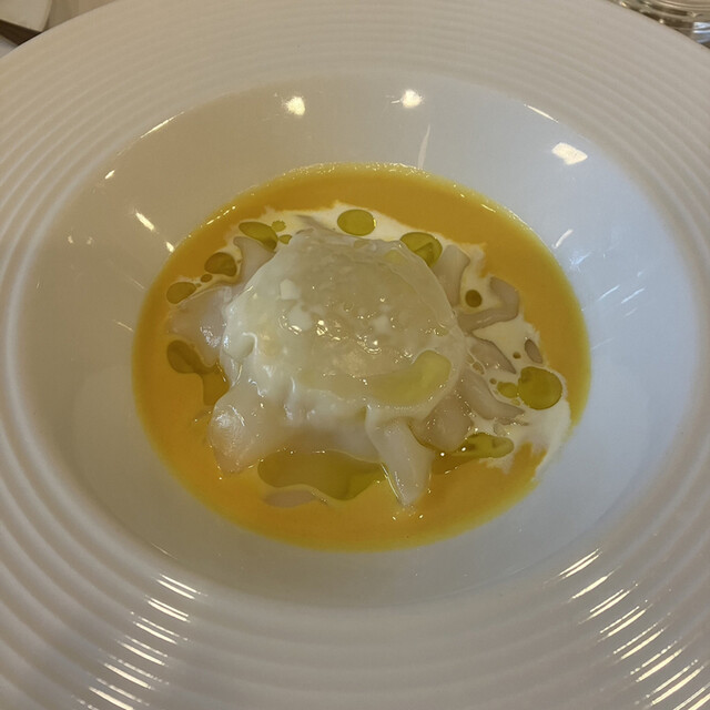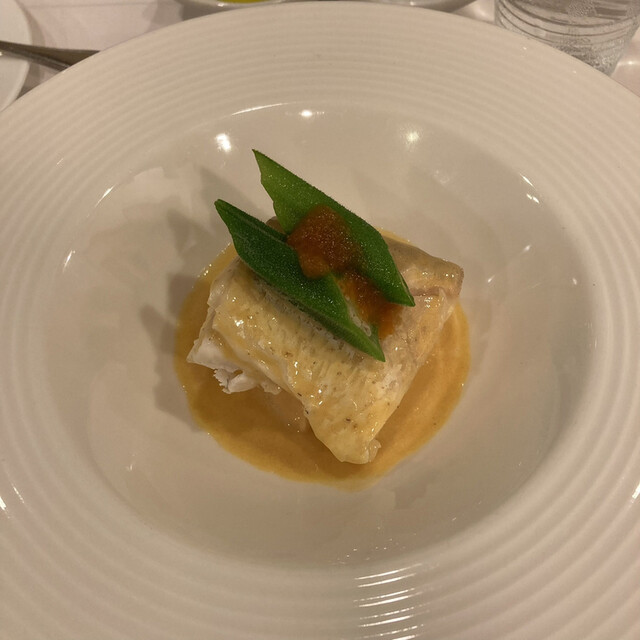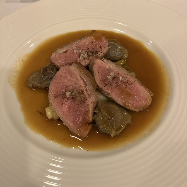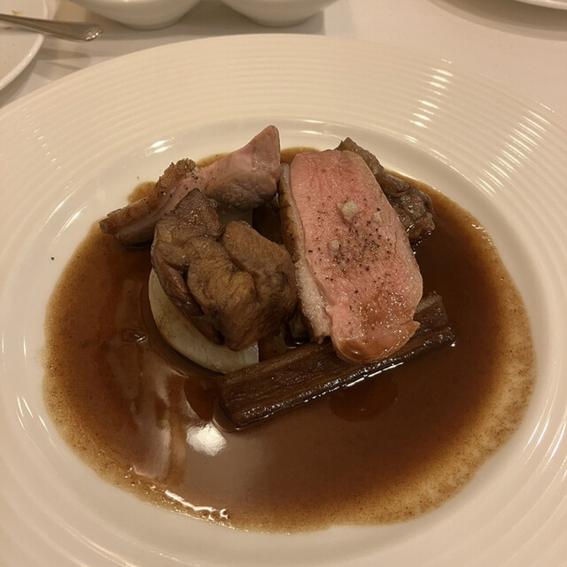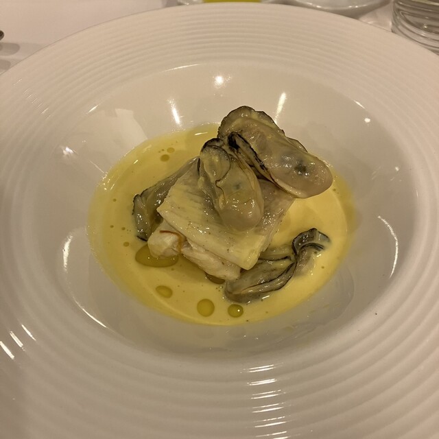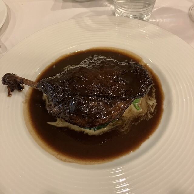 前菜1の太刀魚のムニエルがふわっふわで最高に美味しく、次のラビオリのソースとして敷かれたニンジンポタージュも最高に美味しく、次の牡蠣とホタテのサフランソースも最高に美味しく、最後の鴨の赤ワイン煮でノックダウン、そんな素晴らしいコースでした。