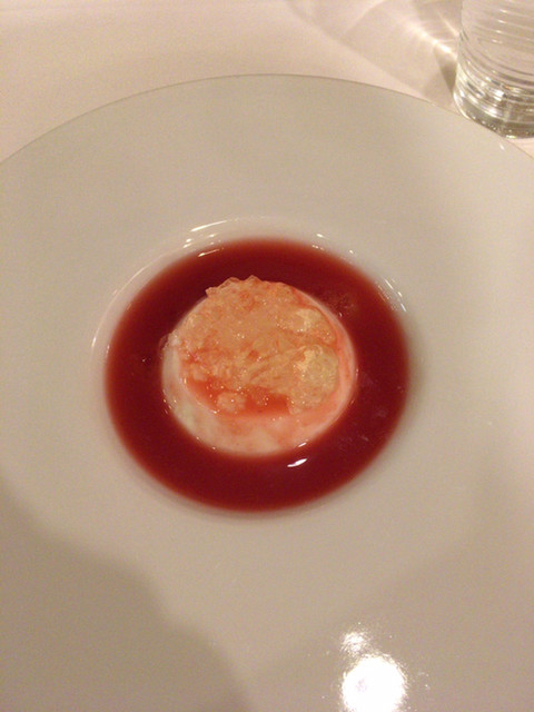 デセールは蜂蜜のブランマンジェにあまおうのソース。