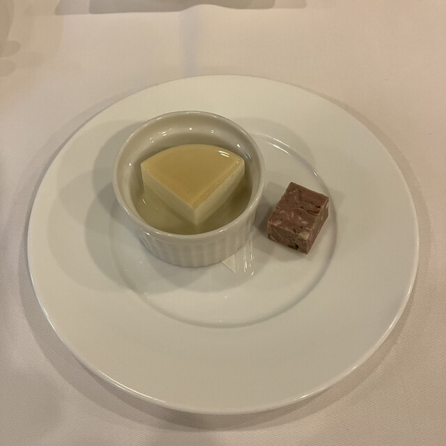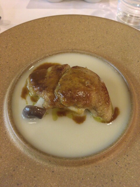 前菜2皿目、フォアグラのソテー、下仁田ネギのポタージュソース。