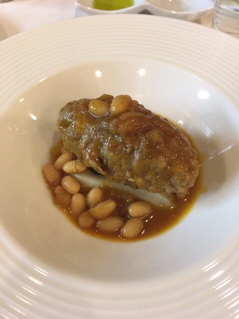 メイン2皿目、角切りのラムのコンフィが混ぜ込まれた豚肉のカイエット。