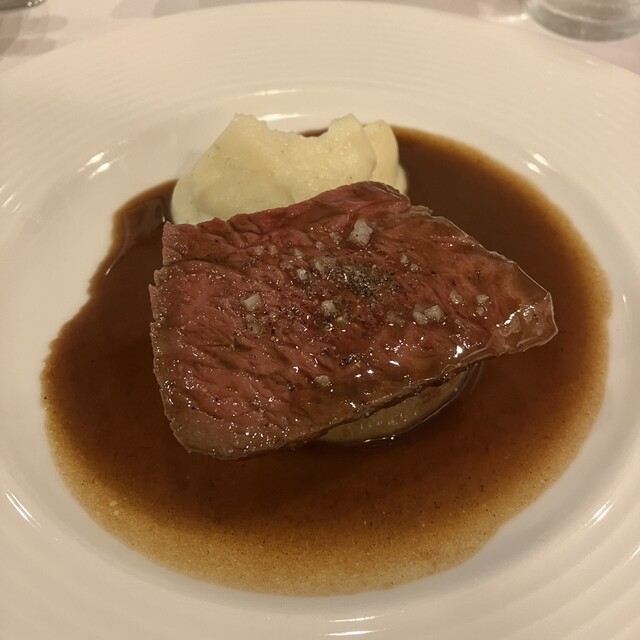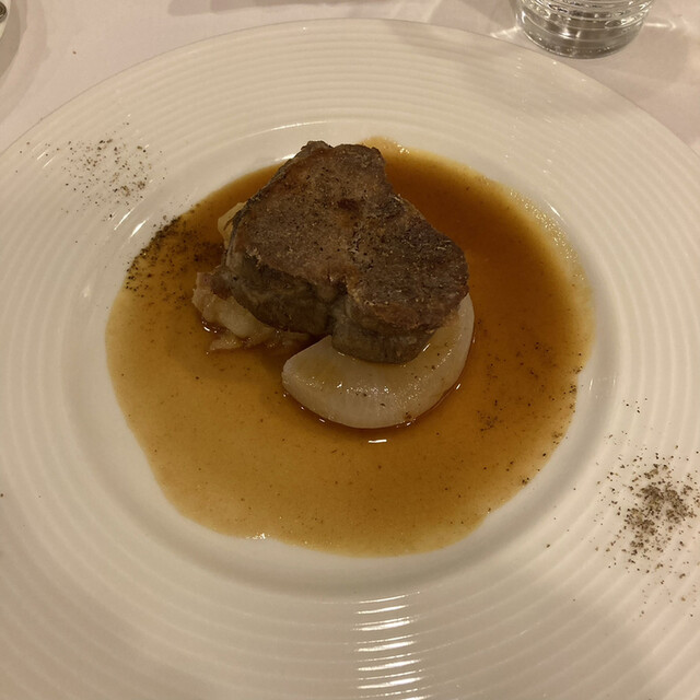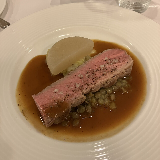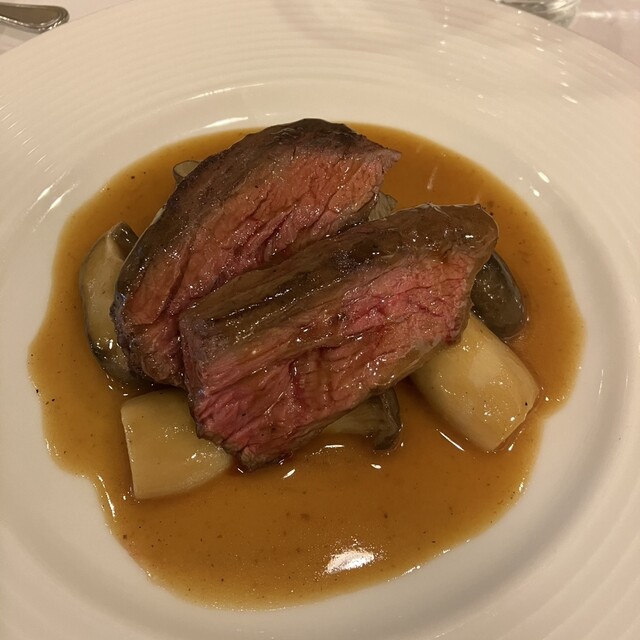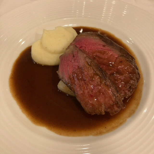 完璧な火入れの肉とベリーが効いた赤ワインソース。夢中で食べてしまった。