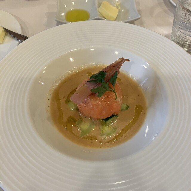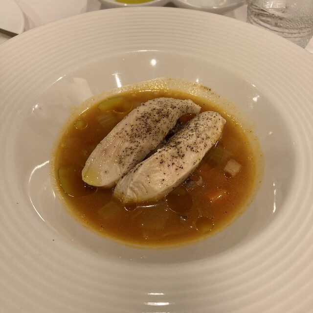 今回のお任せコース、なんと前菜&スープ&メインの計4皿にはバターやクリームを一切使っていないとのこと。