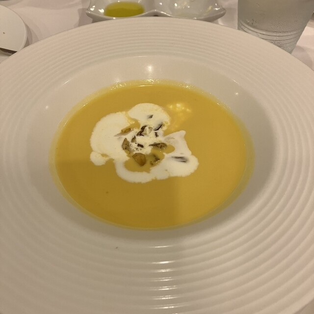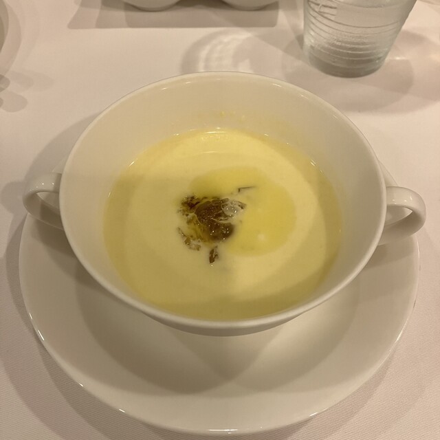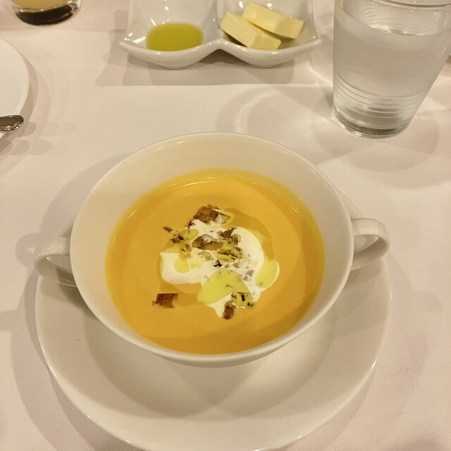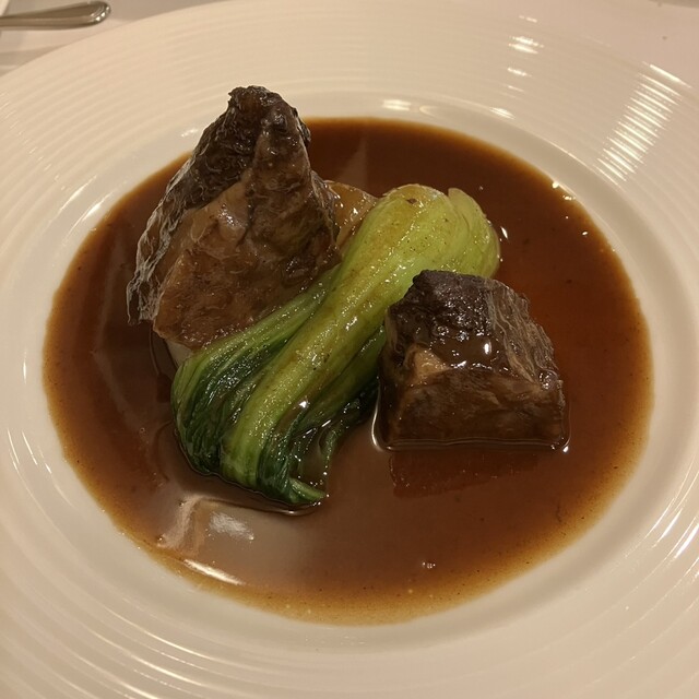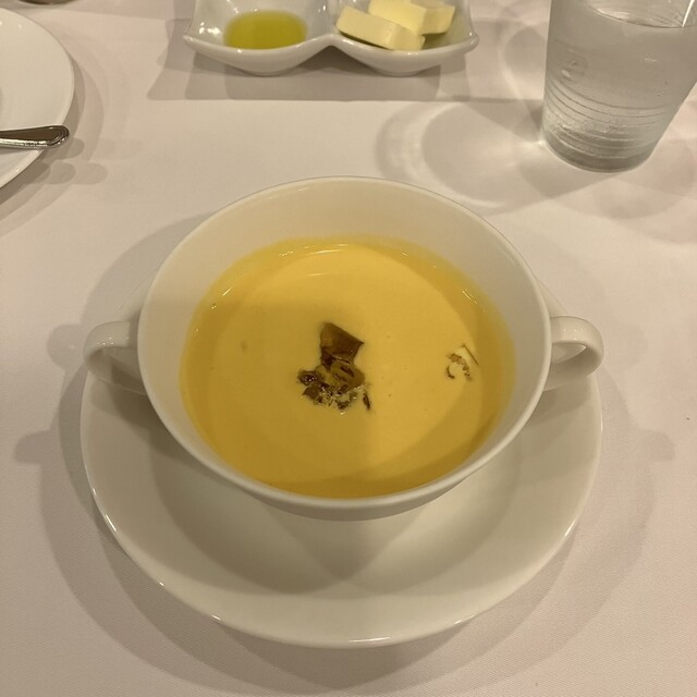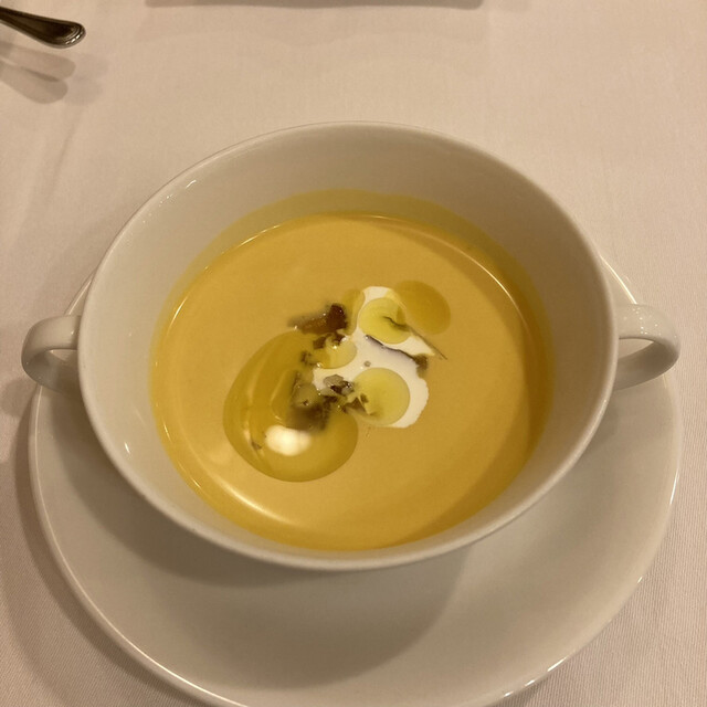 舞茸のポタージュ、豚のブレゼが特に印象的で、いつも通り最高の満足をいただくことができました。