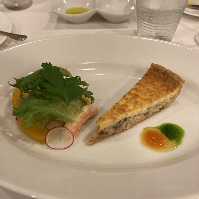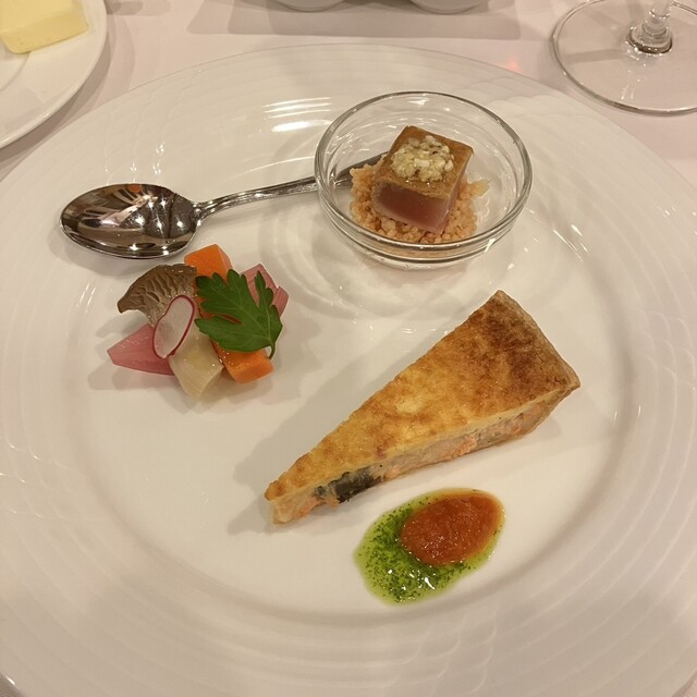 ①サーモンのキッシュ、マグロの瞬間スモーク