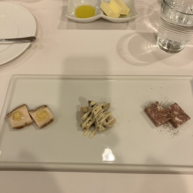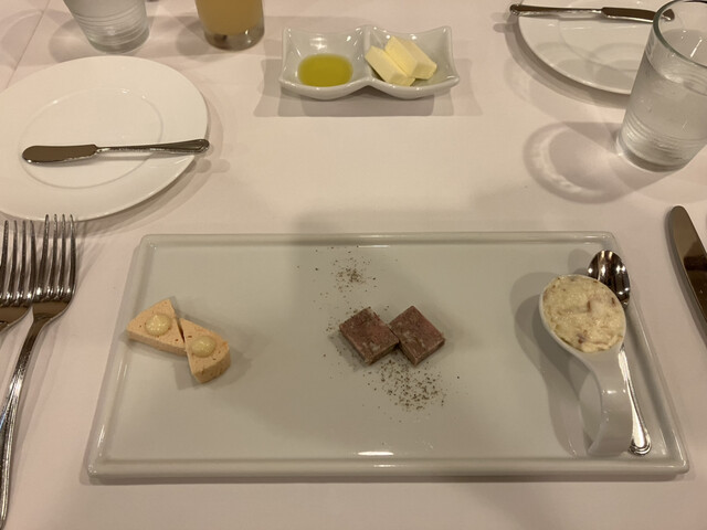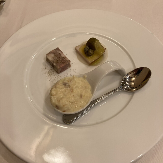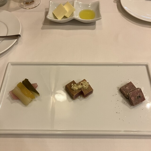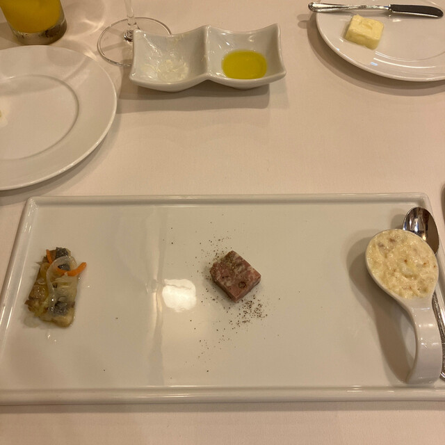 アミューズ、ツナのタルトとパテドカンパーニュ。