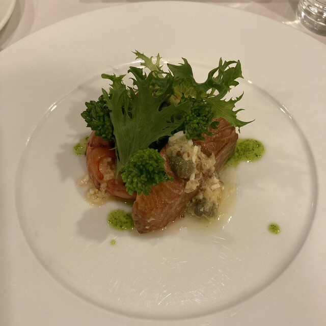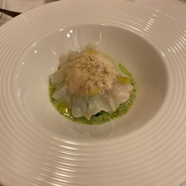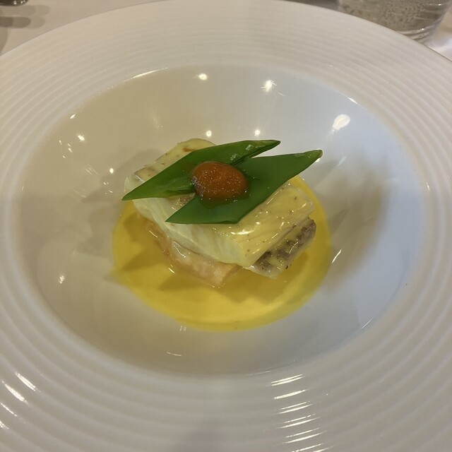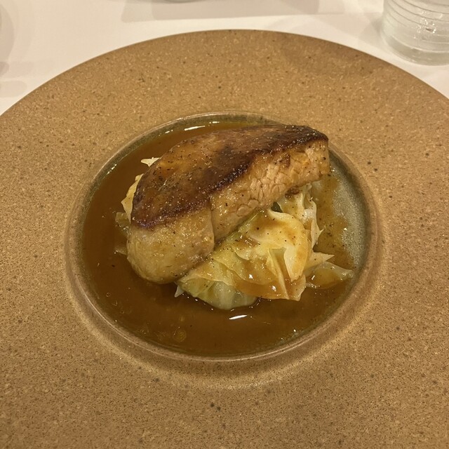 中でも前菜2皿目のフォアグラが火の通り加減が抜群でほんとに美味しかった。バター風味の春キャベツとの相性も◎。