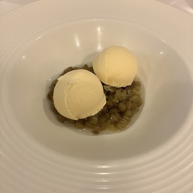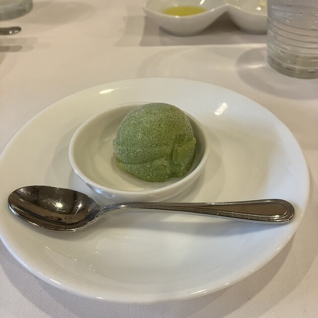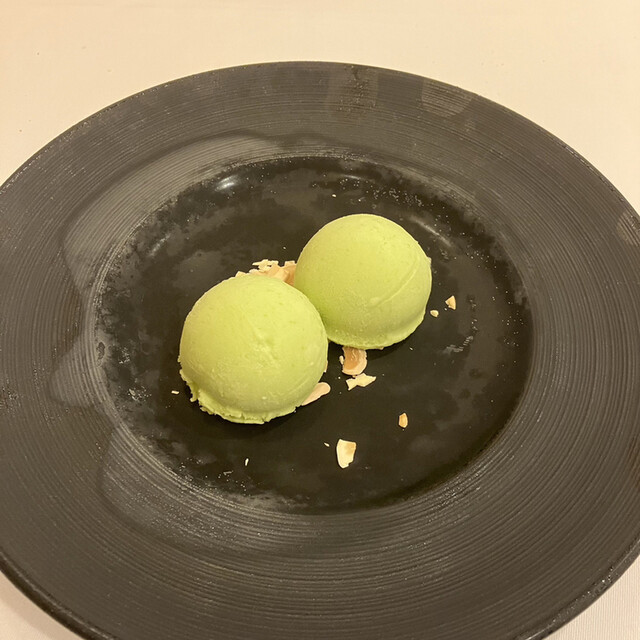 デセールはグリーンピースのアイス。この季節だけのお楽しみ。