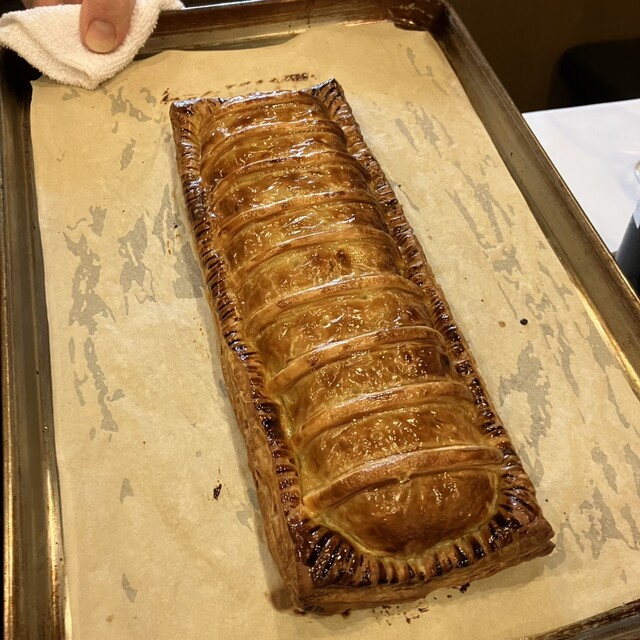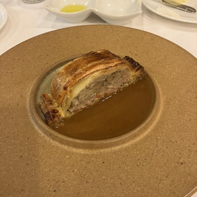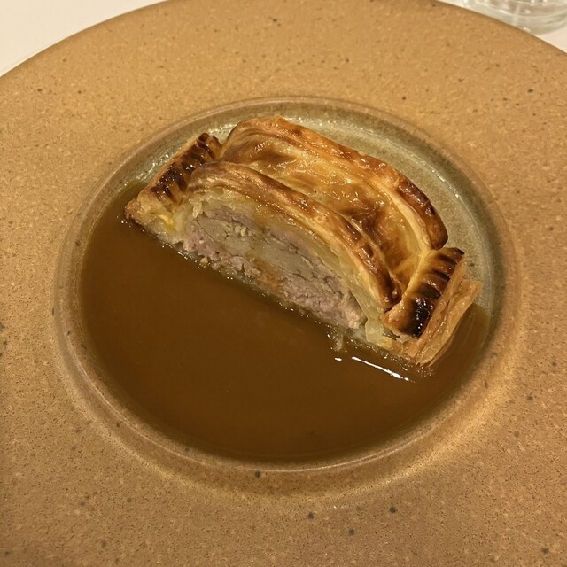 特に美味しかったのは前菜2皿目のひき肉&砂肝コンフィのパイ包み焼き。