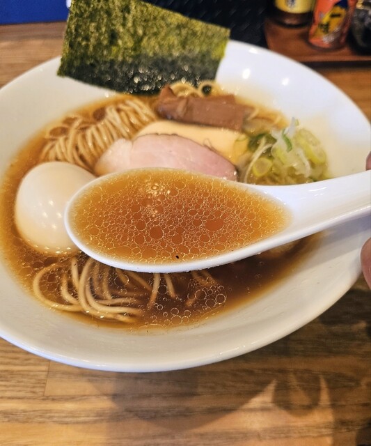 レンゲでひと口すくうと、鶏のふくよかな旨味に魚介がそっと寄り添う、じんわり系の醤油スープ。派手な主張はないのに、体の奥まで染み込んでくるような芳醇さがあります。無化調とは思えないほど輪郭がはっきりしていて、鶏油がほどよ...