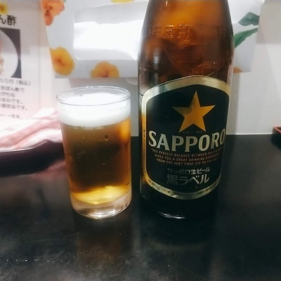 厨房内は店主ワンオペで食券を渡すと直ぐに冷えたグラス&黒ラベル中瓶が置...