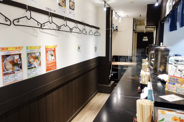 店内の券売機にて食券を購入し、L字型カウンター席の右端へ。