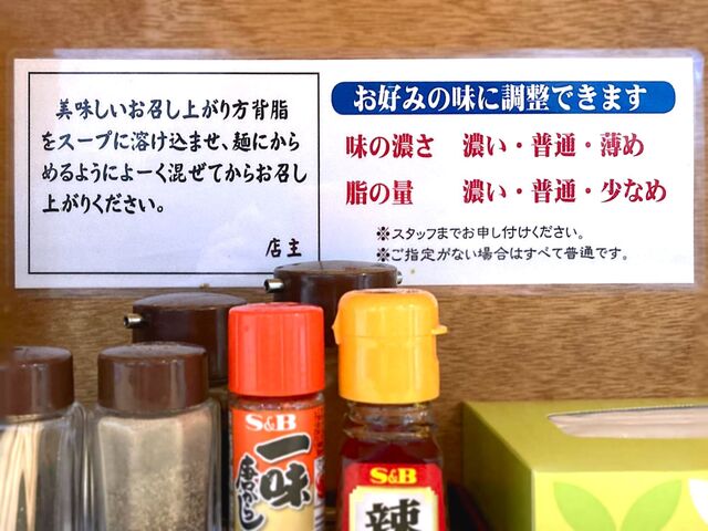 醤油ラーメン 700円は良心的な価格設定。 ちゃんとチャーシュー、味玉、メンマも入っています。 味の濃さ、背脂、ニンニクをそれぞれ好み聞かれるので、並、並、少にしました。 背... 詳細を見る