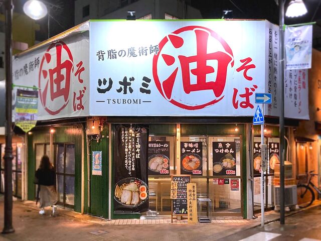 ツボミ油そば、魚介つけめん、辛味噌つけめん、味噌つけめん、特製担々麺、醤油ラーメン、味噌ラーメン、塩ラ...