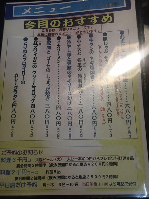 | サービス | 2時間半以上の宴会可 |