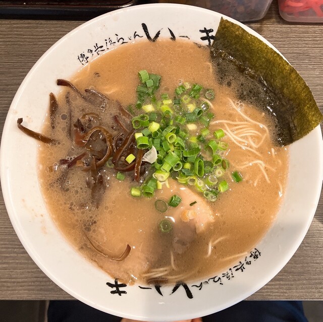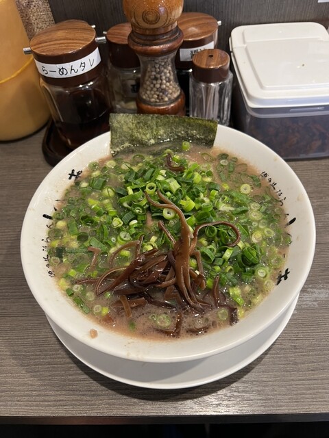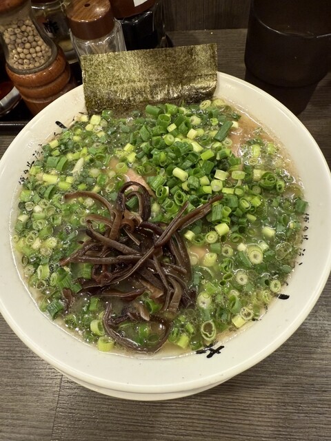 入店前から豚骨の香りが鼻の穴にパイルドライバー。 これはもう本能が「戦うぞ」と叫んでる。 注文はねぎラーメンに味玉トッピング。そこから替え玉3回…フルスイングで挑んだ。 ... 詳細を見る
