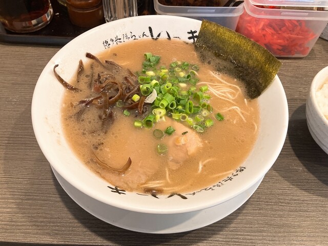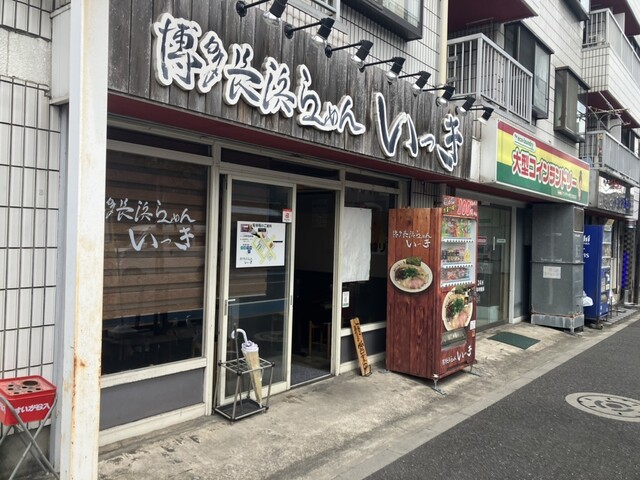 お昼ご飯に 博多長浜らーめん いっき さんへお邪魔します。駐車場が分かりづらいですが向かいのマンションの駐車場に5台分用意されています。マンション裏の道路に停めてから 停められるか確認してからが良さそうです。マンションの駐車場に頭から入って、駐車場が開いていなかった場合 転回がかなり困難です。