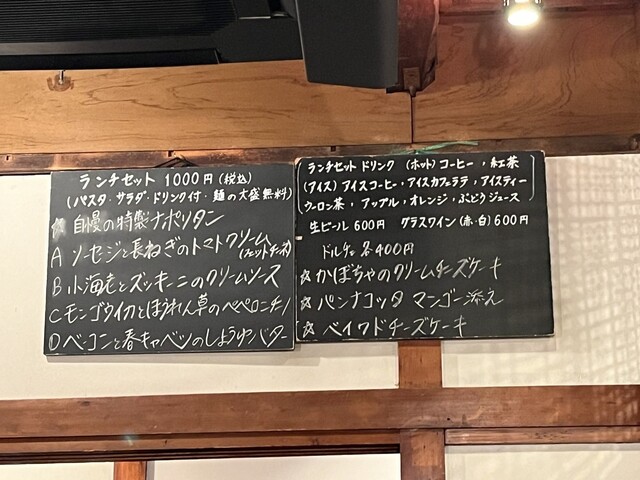 ランチは5種類くらいが毎回ランダムで変わります。ナポリタンだけは常設でした