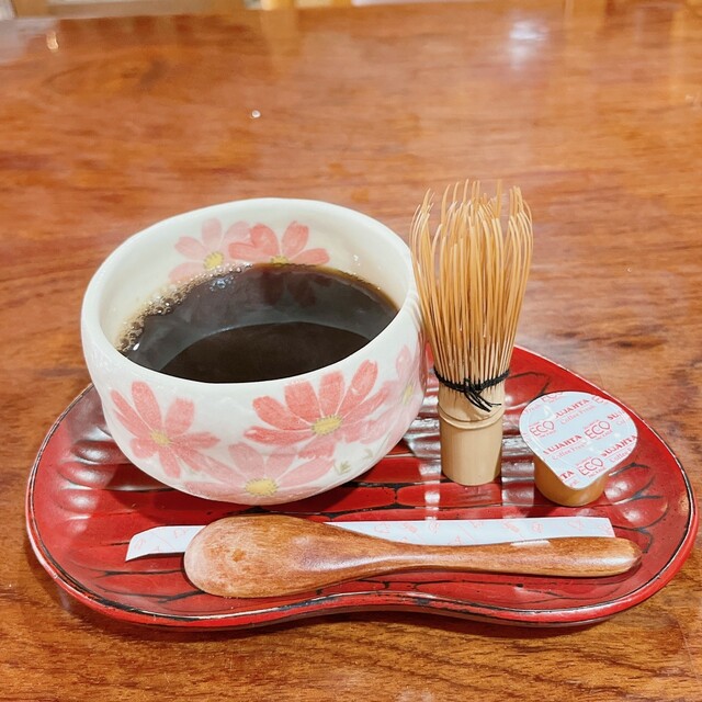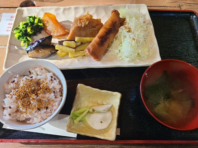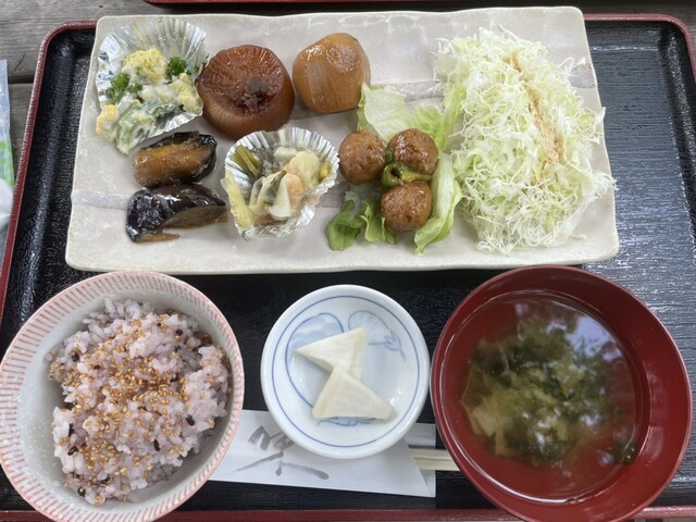 メニューを見て「かやばあちゃん特製ランチにホットコーヒー」をお願いしました。日差しでポカポカのお席で待つこと10分ほどで、料理到...