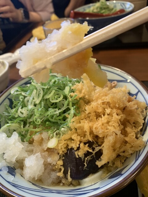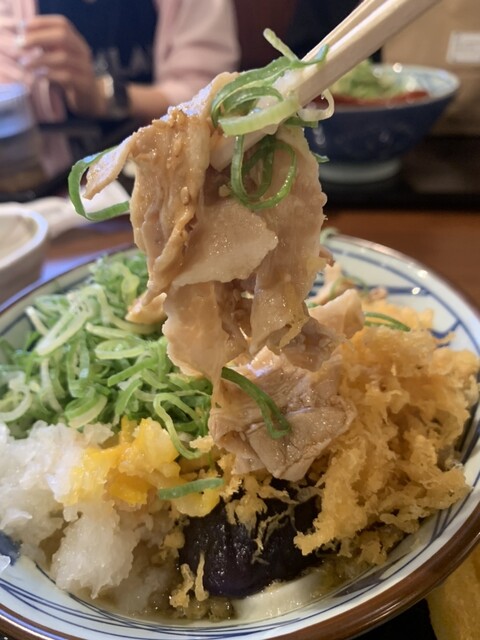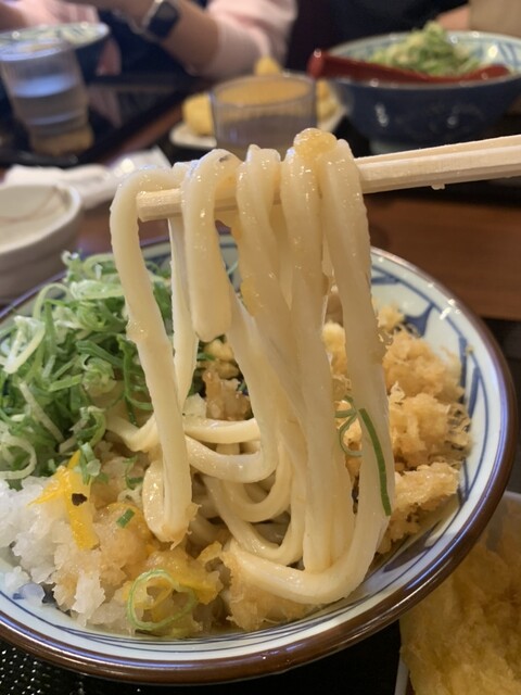 北海道産100%の小麦粉と塩と水、丸亀製麺のうどんはこの3つの素材だけで作られています。お店の製麺機を使い、大きな茹で釜でゆで上げたうどんは、まさに「うちたて、ゆでたて」。ほのかに小麦の香りがする麺は、モチモチとした弾力のある食感です。 薬味もお好きなものを加えて、自分だけの美味しさに仕上げて下さい。