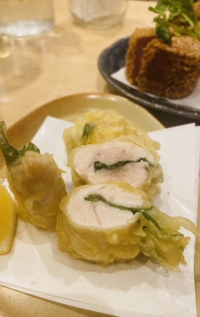 一品一品丁寧に作られていて美味しかったです。焼き鳥は軟骨など物によっては小ぶりでしたが、ささみやねぎまなどは大きく身がぷりぷりでした。特にとうもろこしの天ぷらは衣がサクサクでとてもジューシーでした。また、お酒やジュース、七味に至るまで山形産へのこだわりを感じました。最後に梨のサービスがあり、嬉しかったです。ご馳走様でした。
