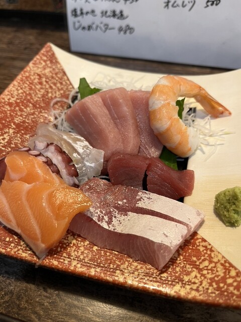 お刺身、小ぶりながらも味は新鮮で美味しかった!