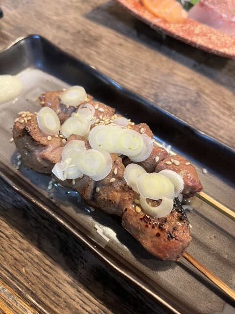 上刺身盛り合わせ、大山鶏の焼き鳥、レバテキを注文
