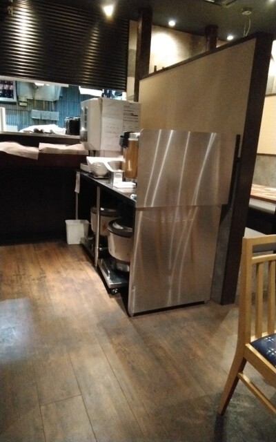 店内は、テーブル席と掘りごたつのお座敷個室もあり、ご飯を炊く大きいガス釜2機も見えます。