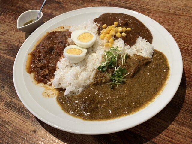 GW中の祝日に訪問。11:30過ぎに伺うと、先客は2組のみで待たずにカウンターへ。 カレーライスは欧風、インド風、グリーンカレー、薬膳スープカレーの4種類。 2種類選べるハ... 詳細を見る