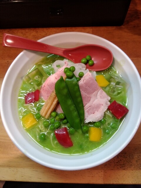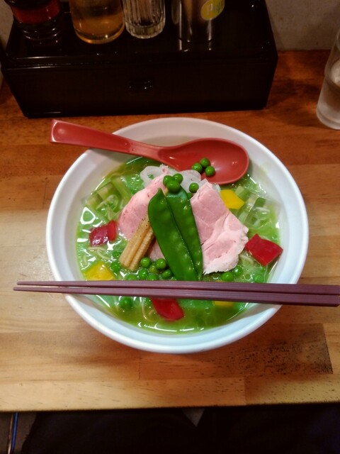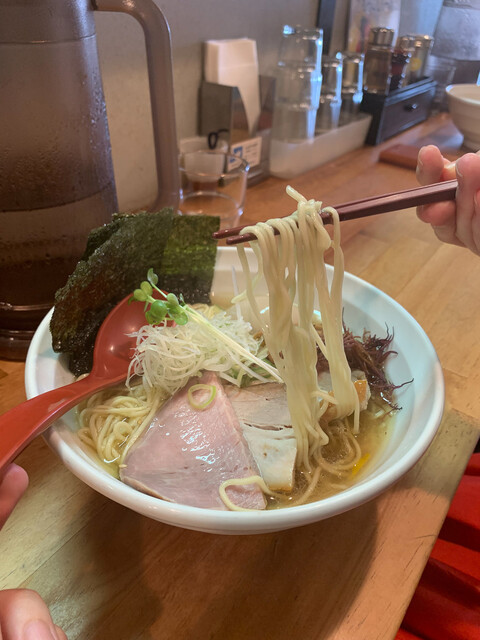 夜の19時頃訪問 中には4名ほどのお客様が 生醤油つけ麺を注文 これでお店の評価が変わったであろう… 少ししてつけ麺到着 なるほど 麺は平打ち縮れ麺 これは美... 続きを読む»