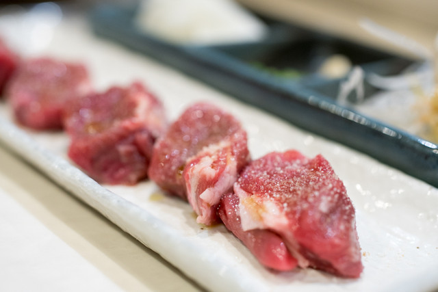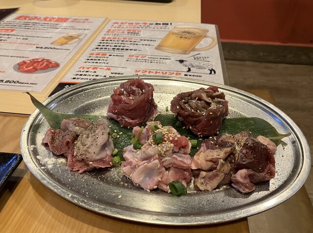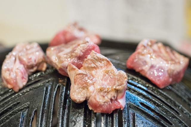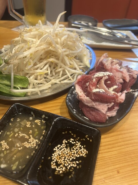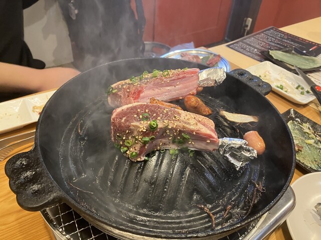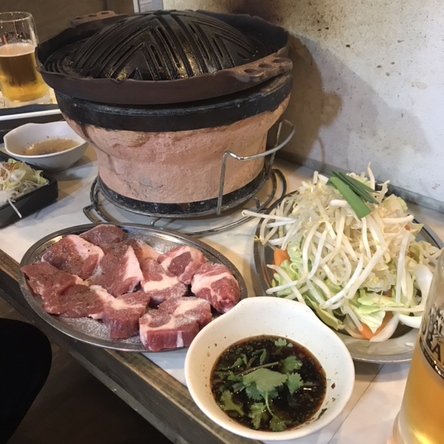 17時57分で先客はなし。生ビール(600円)を頼んで、ランプ(950円)、ロース(950円)、ラムソーセージ(2本)(600円)、野菜盛(500円)を1人前ずつ注文した。...