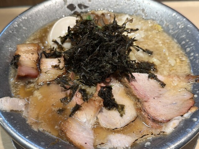 煮干し・乾物・豚骨の効いた醬油ベースのスープで、背脂の甘みと柚子香る美味しい一杯をお届けします。麵は手もみ麵でぷりぷりの食感が◎背脂は標準~大油まで調節可能なので、こってり味がお好きな方にもおすすめです!大判でしっとりとしたチャーシュー、岩のり、玉ねぎなどトッピングも充実!「まかない丼」や「のり茶めし」と、ラーメンのお供にぴったりな一品もご用意♪店内は全席カウンターのみ!ぜひ気軽にお越しください。