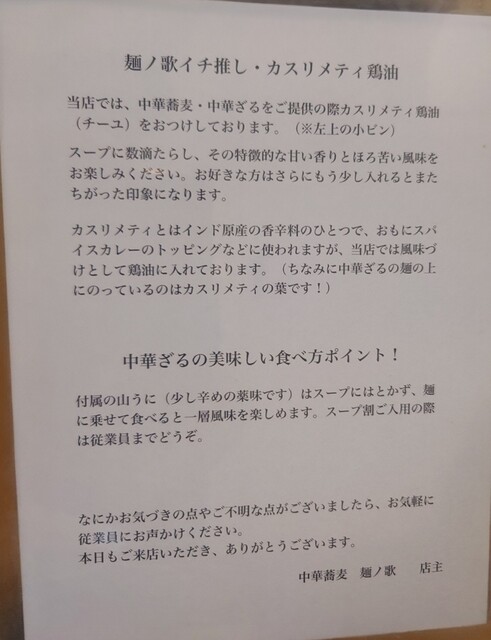 中華蕎麦 麺ノ歌