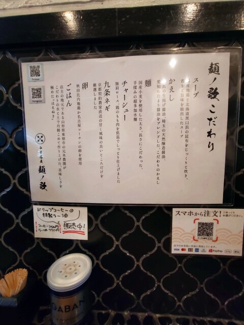 店内は席数少ないので、当然ながら昼時は5〜6名並んでの入店。QRコードで事前メニューを決めておく事ができるが、写真はないので食べログを参考にする。