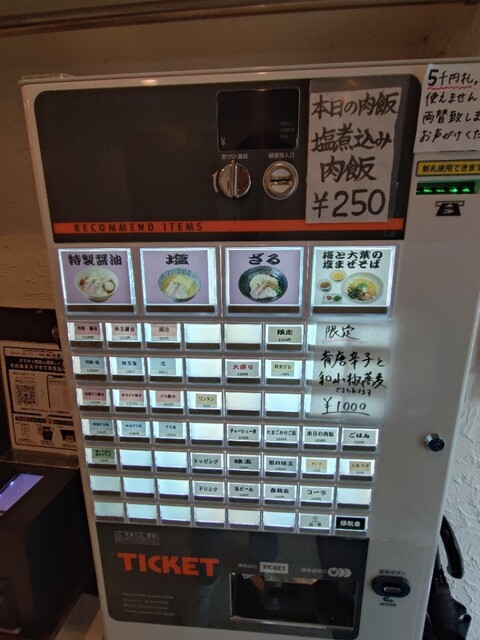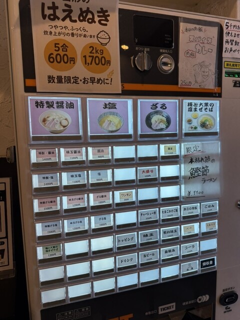 初めてなので券売機左上の特製醤油1400円、