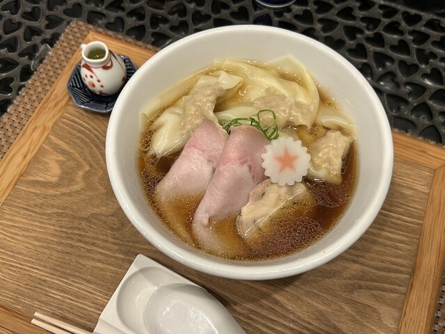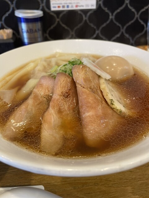 普段の麺の歌の一杯に比べると濃い色合いのスープで...