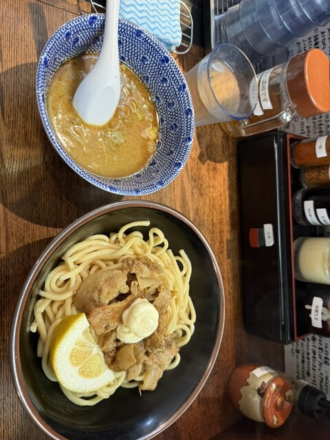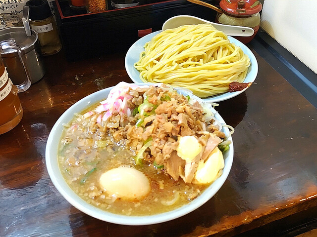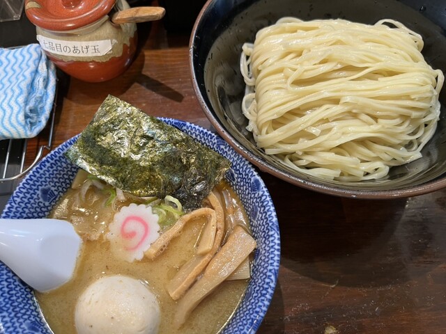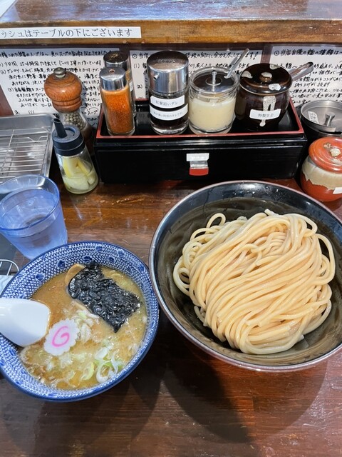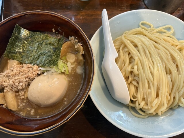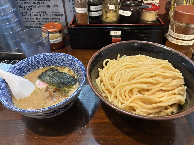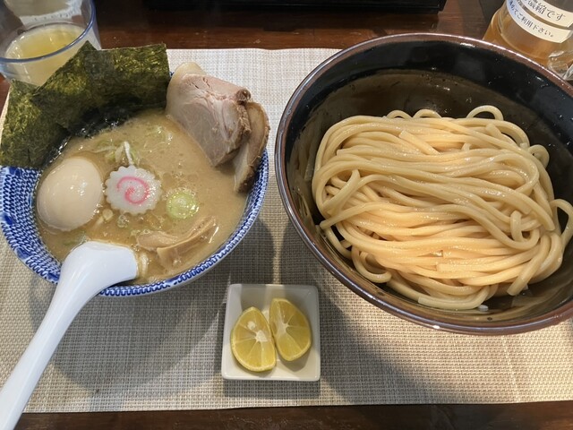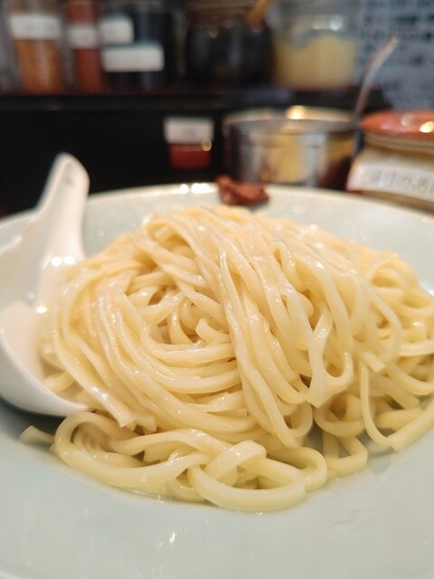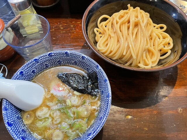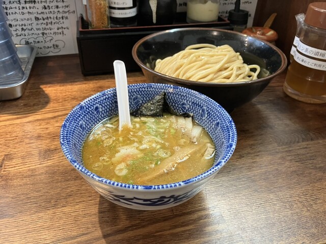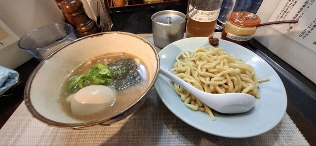 国分寺に住んでいた知人の紹介で、平日夜に訪問。閉店間際で客はまばら。つけ麺普通盛りを注文。麺はおすすめの平打ち麺を選択。麺がつるつるで味わいあり美味しい。熱々のつけ汁は和風の香りがよく、メンマ、小さく...